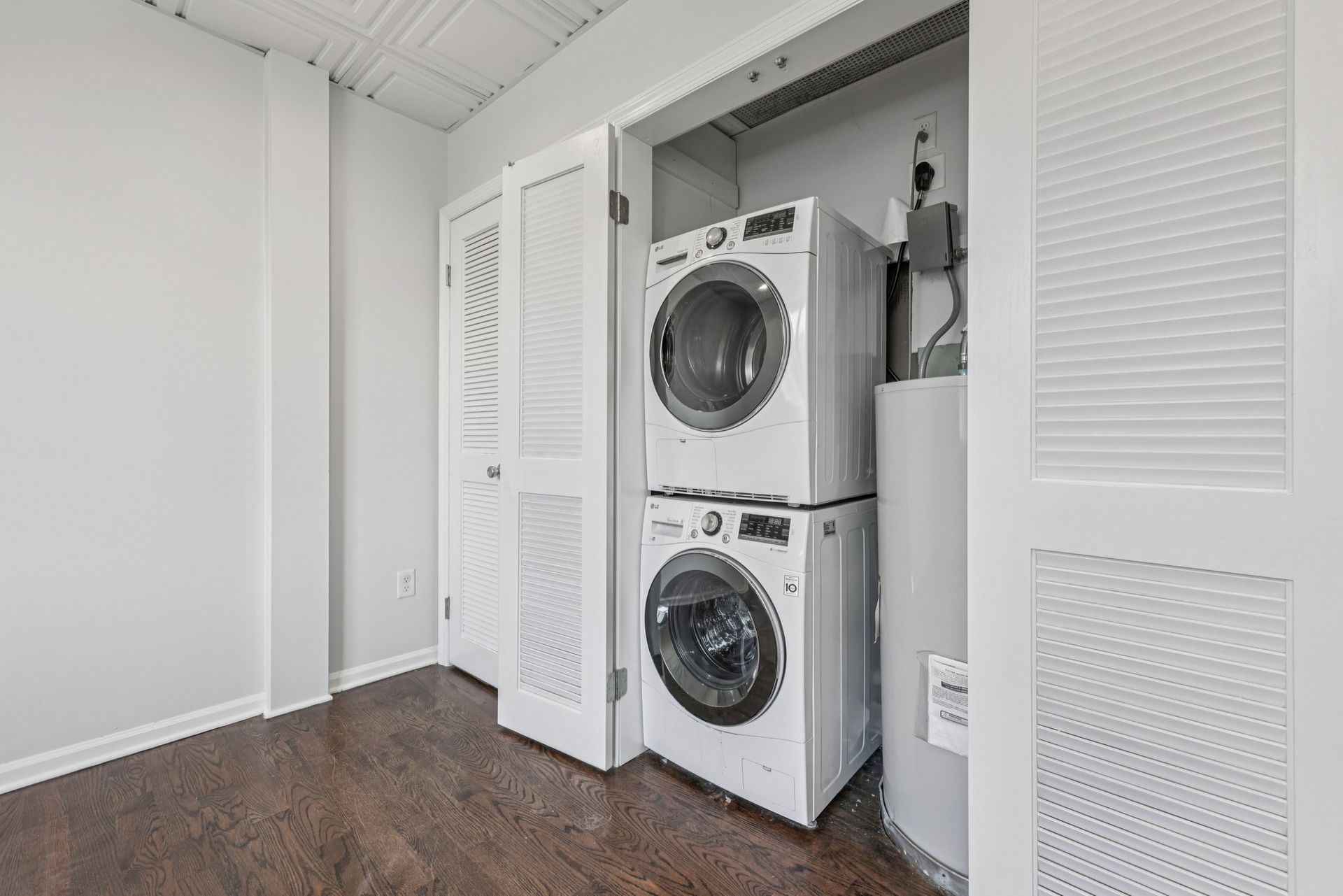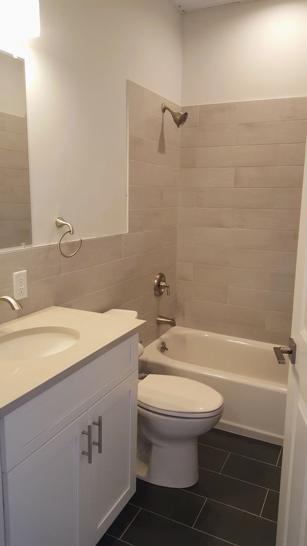-In Unit W/D, and renovated tiled bathroom as well as central heat and a/c.